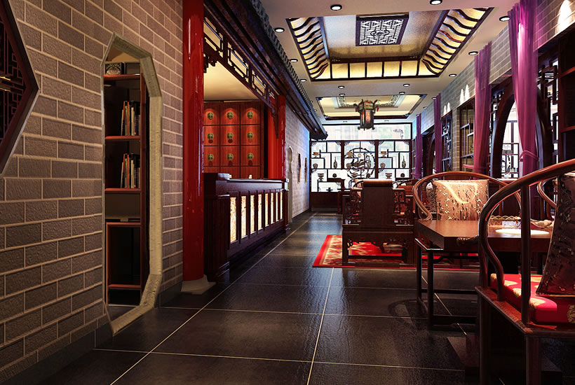 古韻古香 看酒店裝飾裝修設計效果圖中裝飾的組合與表現(xiàn)----[四合茗苑](圖文)