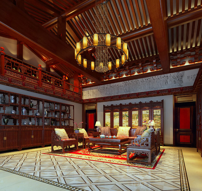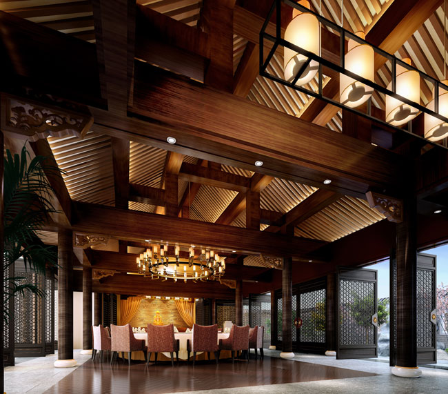 雕梁畫棟 中式豪華酒店裝修設計圖欣賞感受紋理細膩----[四合茗苑](圖文)