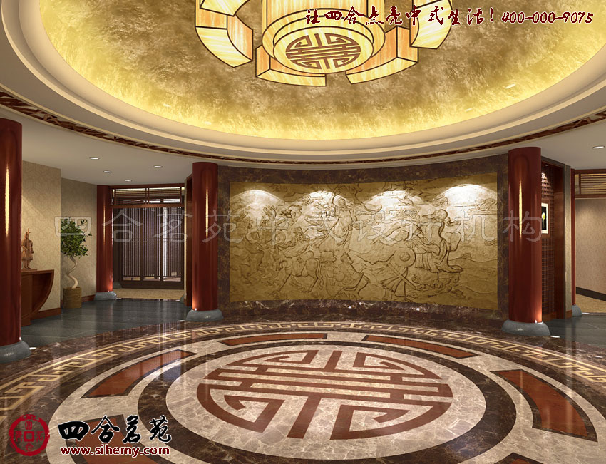 采用環(huán)形設(shè)計氣宇恢宏的大廳,上部是金碧輝煌的吊頂,朱紅立柱間是雕工細(xì)膩的壁畫。大廳總是顧客接觸到酒店的第一步,就像人與人交往,第一印象往往很重要。所以大廳大氣而有文化美感的設(shè)計,讓人對酒店的“靠譜”產(chǎn)生一定信任感。繼而不會排斥進(jìn)一步深入了解的愿望,一個好的開始,事情便先成功了一半。