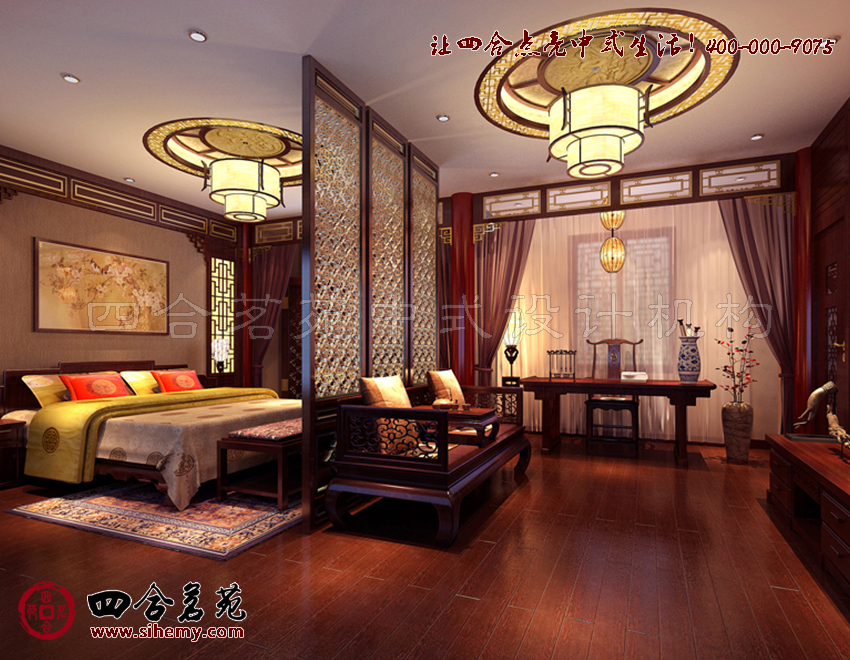 書(shū)房中室內(nèi)裝飾從對(duì)色彩和造型的拿捏入手,在裝飾題材的構(gòu)建和銜接上,力爭(zhēng)給觀者中式古典裝飾幽雅端秀的藝術(shù)觸感。